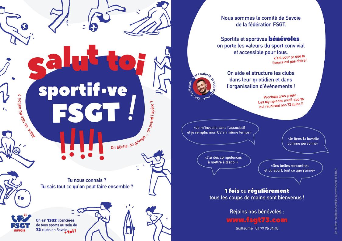 Ils sont une trentaine environ et font majoritairement partie des clubs FSGT (Opinel Football, Helio Technic Football, Yoga Bien Etre et Détente, Les Paulettes Handball, Jon’s club Football, Montagne Sport Nature, AS Macôt La Plagne Cyclisme, ALS randonnée, Belledonne Sport Nature, Nature Sport Santé, les 3 Mousquetons… et tant d’autres) sur le bassin chambérien et partout en Savoie.