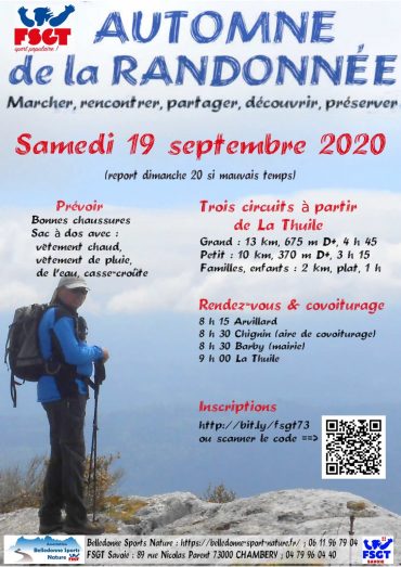Découverte de la randonnée au départ du lac de la Thuile le samedi 19 septembre 2020 avec différents itinéraires en fonction de votre niveau…