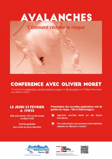 Cette conférence menée par Olivier Moret vous proposera une approche concrète du ski de randonnée basée sur des leçons d’accidents, et vous présentera des outils simples, des exemples et des méthodes adaptés à tous niveaux.
