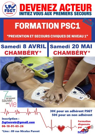 Le Comité FSGT de la Savoie encourage les responsables associatifs, les dirigeants, les éducateurs, les entraîneurs, les bénévoles qui interviennent sur des manifestations ou des événements mais également tous les adhérents à se former aux gestes qui sauvent. Cette formation PSC1 aborde par ailleurs l’utilisation d’un défibrillateur que les collectivités mettent désormais à disposition dans tous les établissements sportifs.