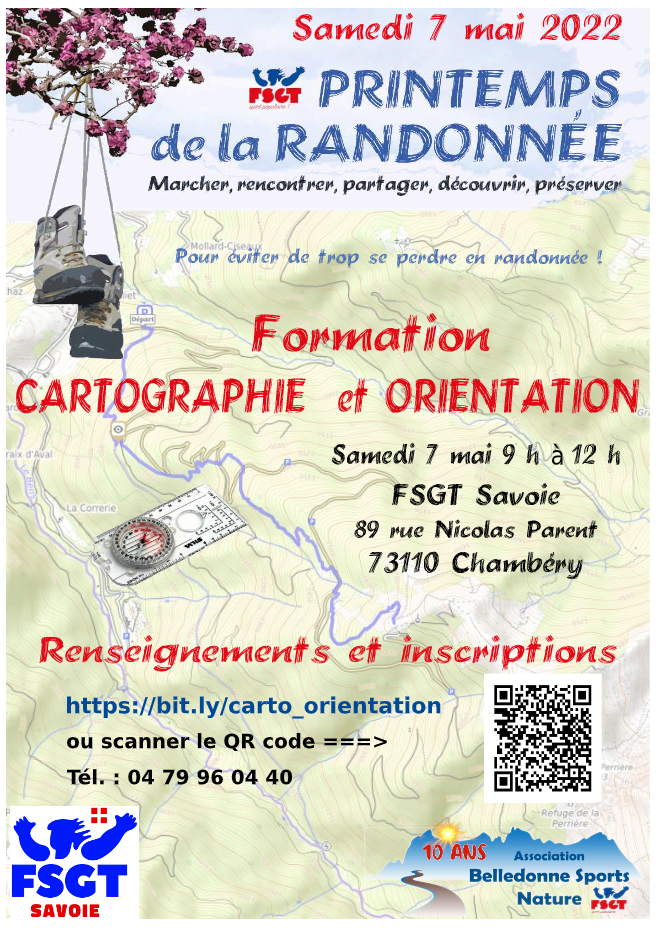 La veille, samedi 7 mai 2022, une formation cartographie et orientation est organisée par le club Belledonne Sports Nature de 9h à 12h au Comité de Savoie FSGT 89 rue Nicolas Parent à Chambéry.