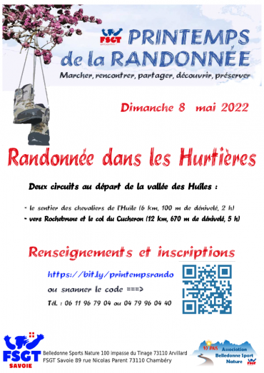 Dans le cadre du Printemps de la randonnée FSGT, le club Belledonne Sports Nature et la FSGT Savoie proposent une randonnée au départ du Pontet en vallée des Huiles le dimanche 8 mai 2022.