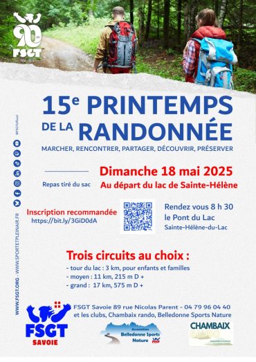 Dans le cadre du 15e Printemps de la Randonnée FSGT, le comité de Savoie FSGT et les clubs FSGT Chambaix Rando et Belledonne Sports Nature proposent plusieurs circuits au départ du lac de Sainte Hélène (Savoie).
