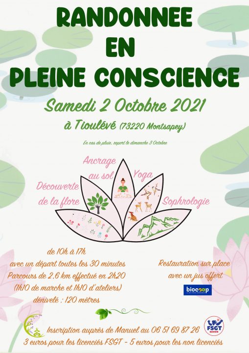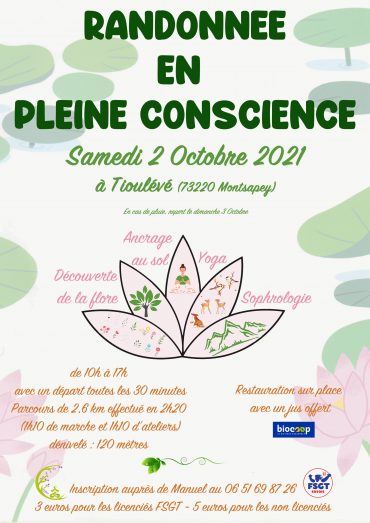 Pour faire du bien au corps et à l’esprit, 1h20 de marche avec un dénivelé 120 mètres jalonnée de séances d’ancrage au sol, de yoga et d’un atelier à la découverte de la flore.