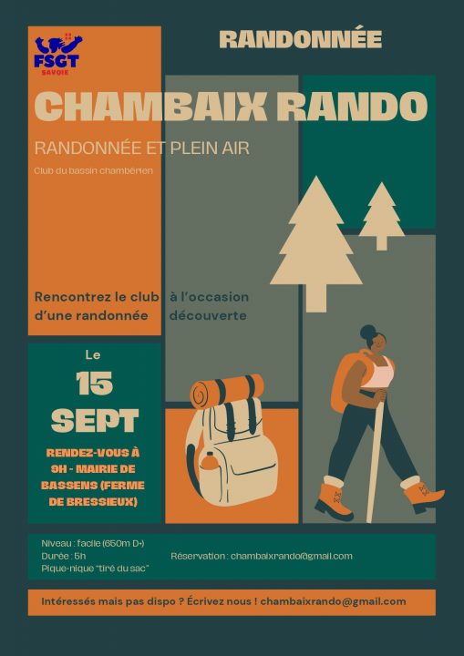 Le nouveau club FSGT Chambaix Rando organise sa première randonnée loisir au départ de Bassens le dimanche 15/09 à 9h.