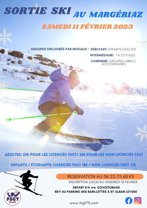 La commission ski du comité FSGT Savoie et le club ALS Ski organise une nouvelle sortie de ski au Margériaz le samedi 11 février 2023.