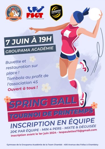 20€ par équipe et tombola sur place au profit de l’association 4S oeuvrant pour le bien-être des femmes victimes de cancers féminins à Chambéry.