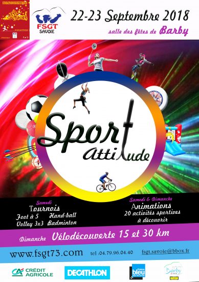 Retour sur la 1ère édition de la SPORT ATTITUDE, manifestation pour la découverte des activités sportives et de loisirs de la FSGT. Labellisée par le Ministère des Sports dans le cadre de la fête nationale « la Fête du Sport », elle s’est déroulée sur la commune de Barby les samedi 22 septembre et dimanche 23 septembre 2018.