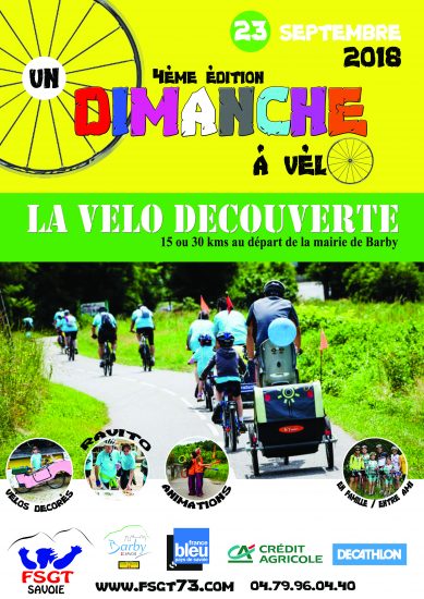 Le dimanche était organisée la 4ème « Vélodécouverte, un dimanche à vélo » au départ de la salle des fêtes de Barby. L’objectif de la manifestation est de partir seul, entre amis ou en famille à la découverte du réseau cyclable de l’agglomération chambérienne et du patrimoine de chaque commune. Ce qui fait la force de l’événement est certainement le coté ludique des animations mises en place sur le parcours et les ravitaillements. Avec des animations sur le village départ/arrivée.