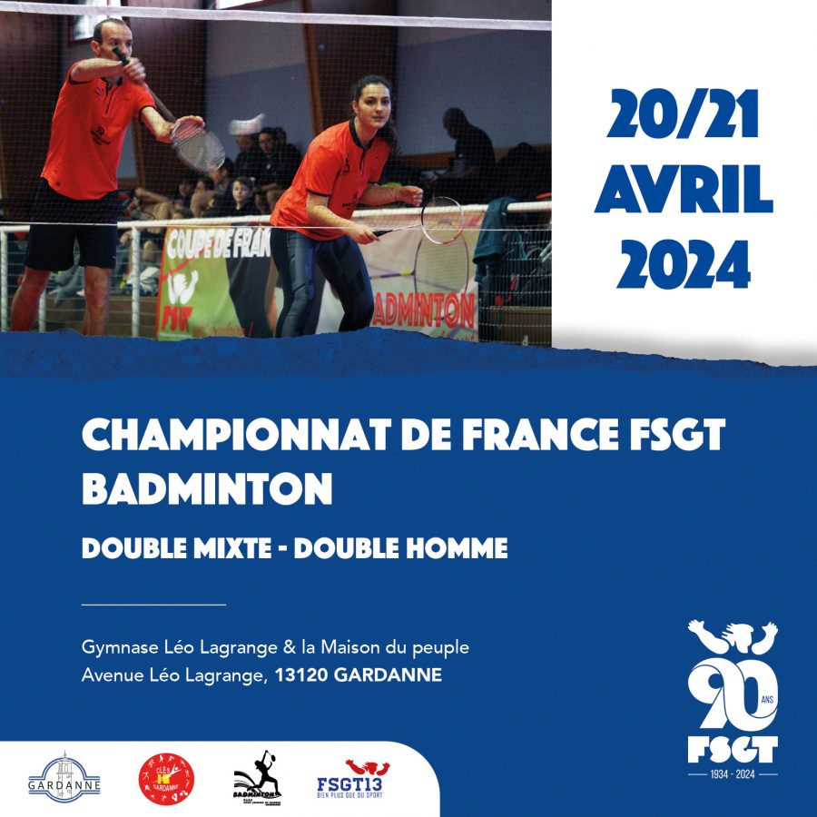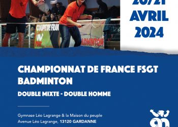 Les championnats de France FSGT de Badminton en Double se sont déroulés le week-end des 20 et 21 avril 2024 à Gardanne (13) avec 32 paires engagées.