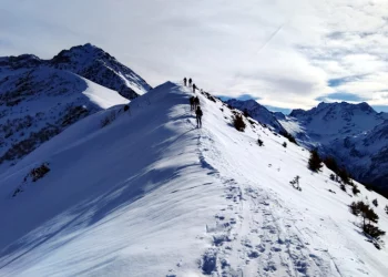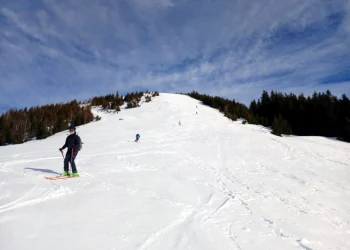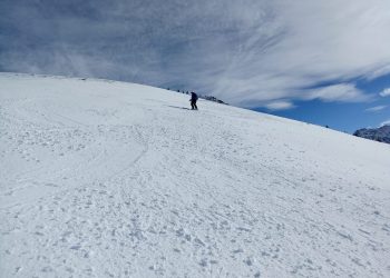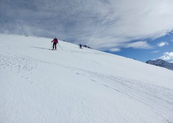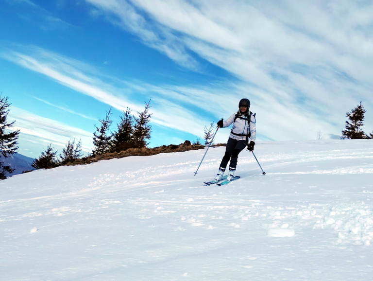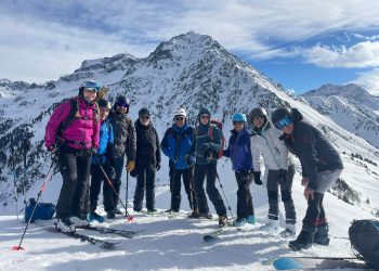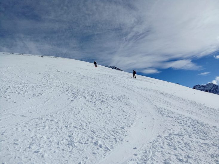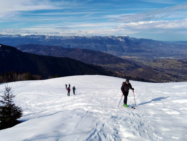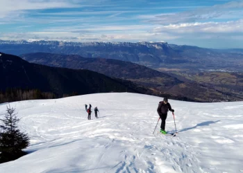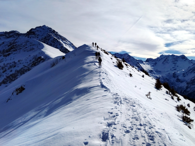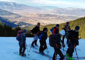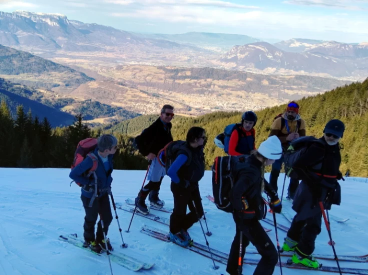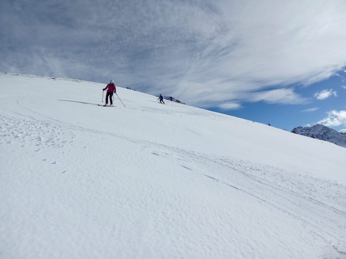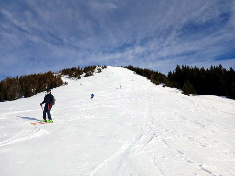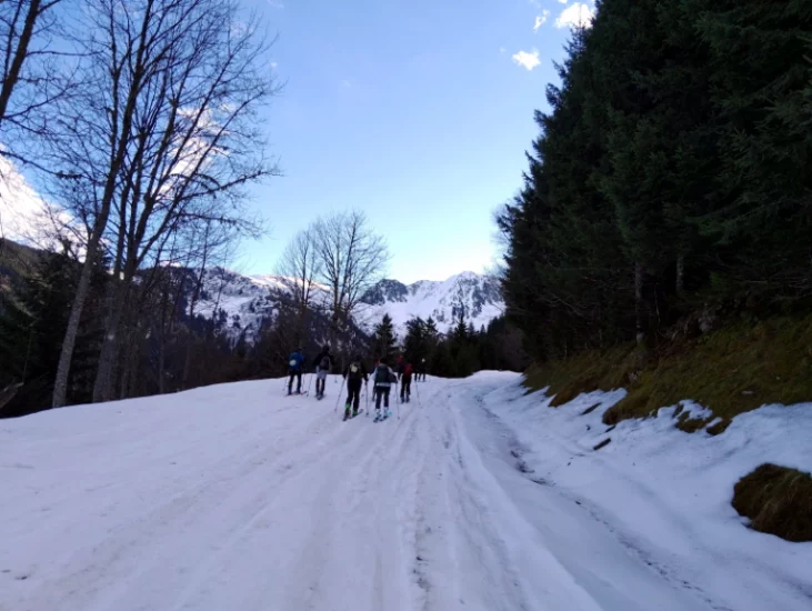 Belle journée ce samedi 25 janvier 2025. Avec un enneigement particulièrement déficitaire, nous sommes partis de 1250m, par la route, car l’itinéraire par les pistes forestières était déneigé. Au point 1531m, nous avons rejoint le bas de l’ancienne station de Val Pelouse.