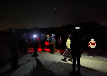 Nos participants, licenciés ou non à la FSGT, sont montés en raquettes ou en ski de randonnée durant 45 minutes. Ou plus rapidement en motoneige pour certains.