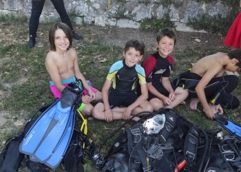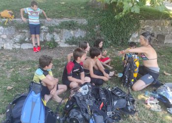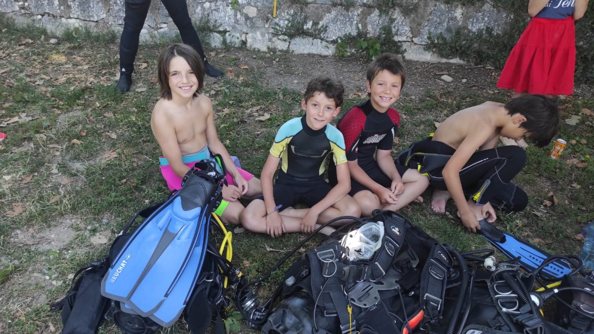 Malgré quelques réticences, les enfants se sont rapidement sentis à l’aise dans l’eau. Certains ont même commencé à faire des exercices de Niveau 1 comme le vidage de masque et la gestion d’air du gilet.