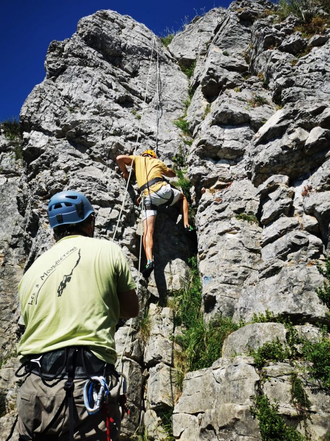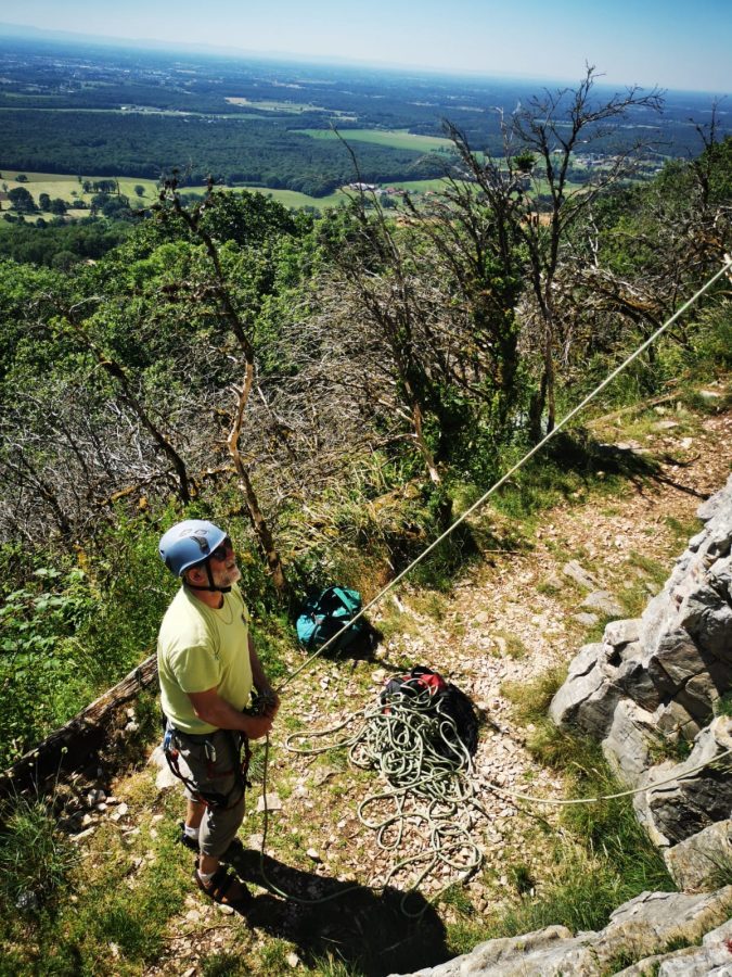 Guillaume et Manon du comité FSGT Savoie ont suivi un stage d’escalade du 14/06 au 16/06 organisé et animé par Philippe du club des Trois Mousquetons. Il s’est déroulé à Bourg en Bresse avec de la pratique en intérieur au gymnase Saint Roch, fief du club des Trois Mousquetons, et sur sites naturels aux falaises Cuiron et de Neuville. Les objectifs étaient une révision des principes de base de l’escalade, la réalisation d’exercices de sauvetage et la création de voies mais également l’encadrement d’un groupe d’enfants avec la réalisation de jeux éducatifs.