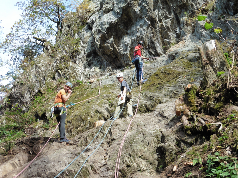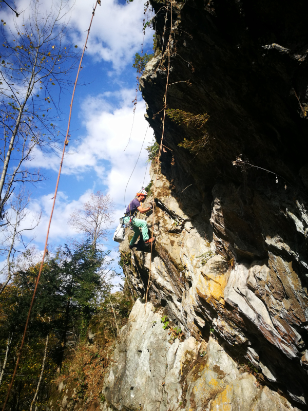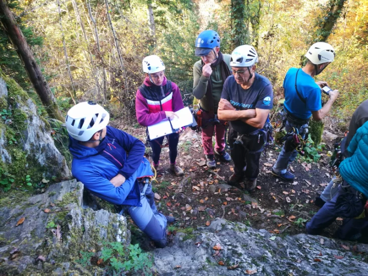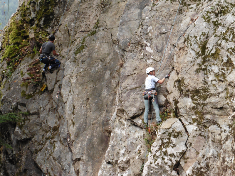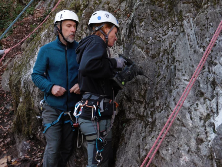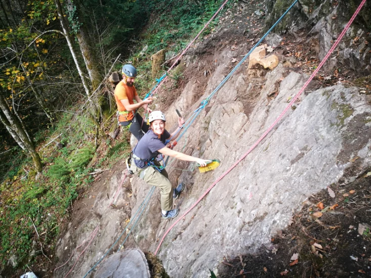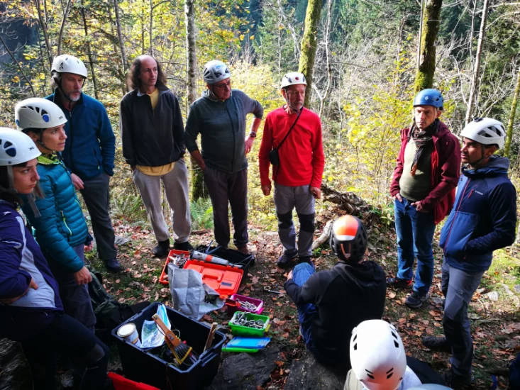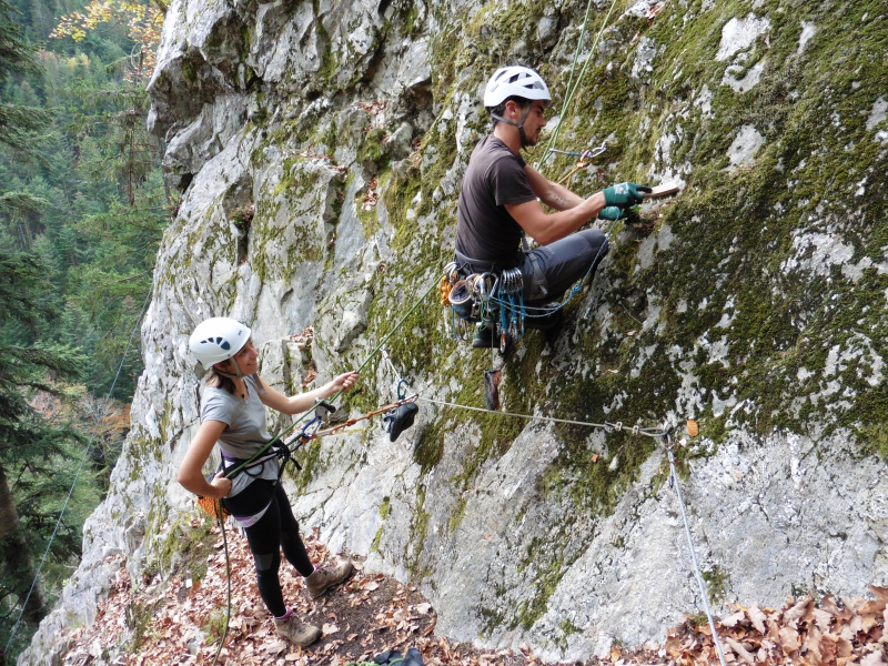 Contre toutes attentes, malgré la période, il a fait un temps magnifique du samedi au lundi ! Pluie le mardi matin. Tous les participants ont pu voir et pratiquer les différentes techniques nécessaires pour équiper et entretenir un site naturel d’escalade :