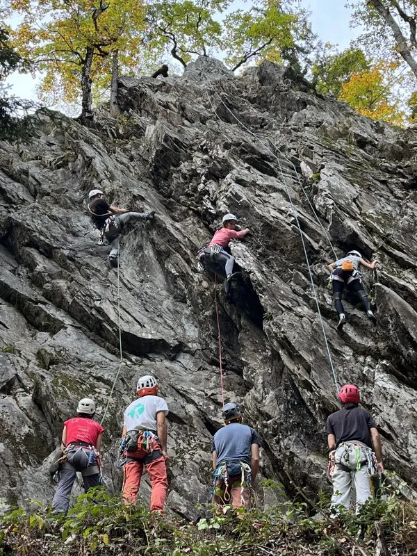 3 formateurs (Rémi Cappeau, Fernando Pintado, Daniel Dupuis).Des niveaux d’escalade très variés.