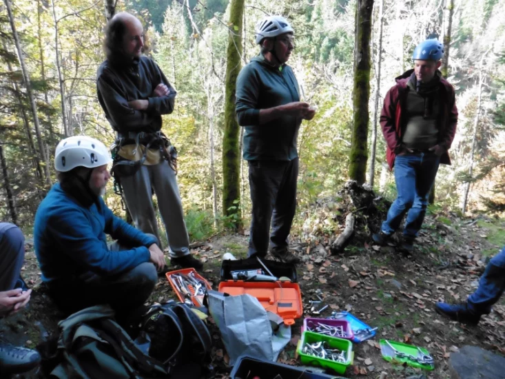 Dimanche 30, lundi 31 octobre : plusieurs ateliers pour aborder toutes les tâches. Avant le diner, briefing et discussions sur les aspects administratifs et juridique de la gestion d’un site d’escalade.