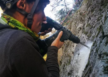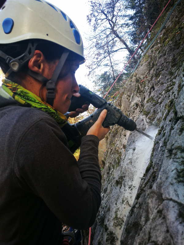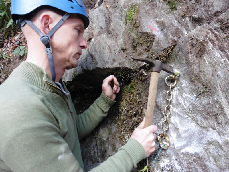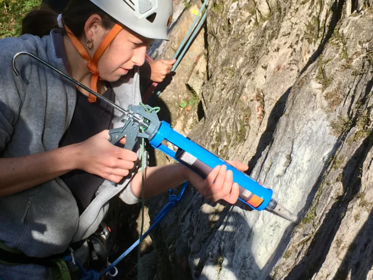 - pose des relais et des points d’assurage,des broches par collage à la résine,