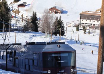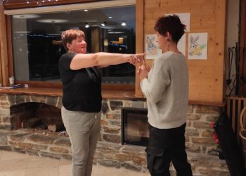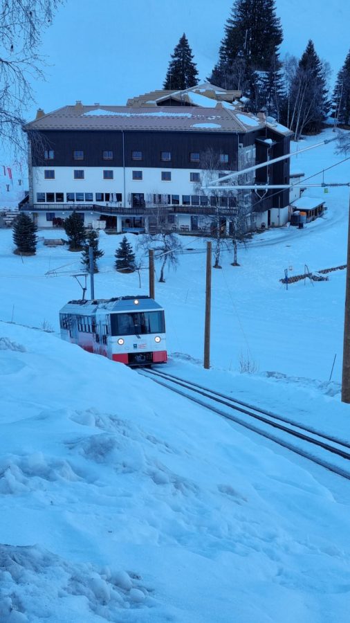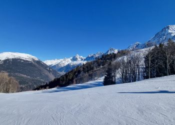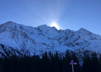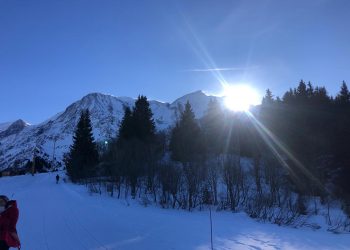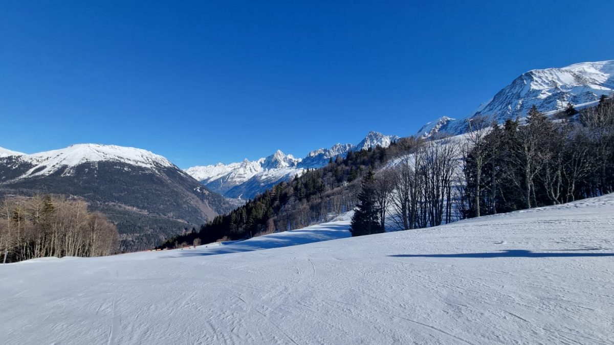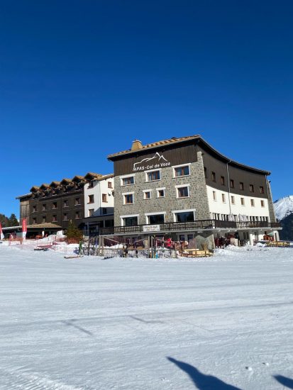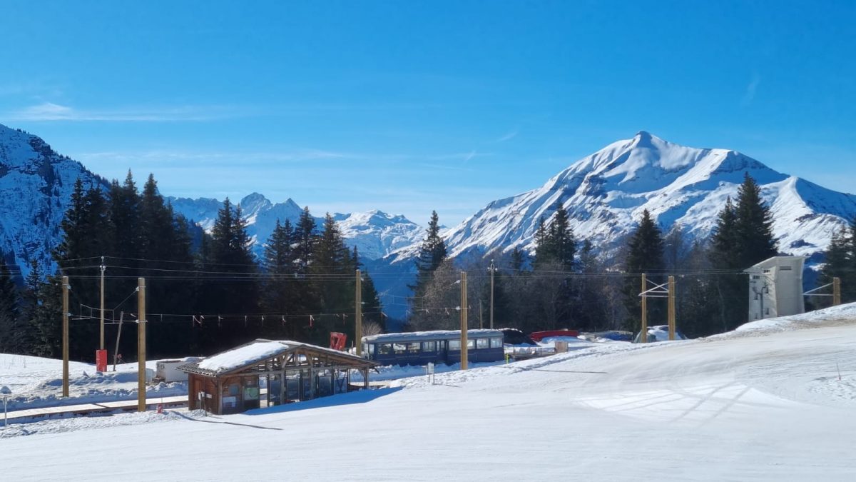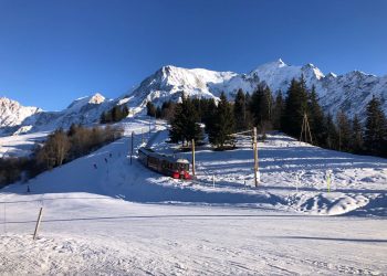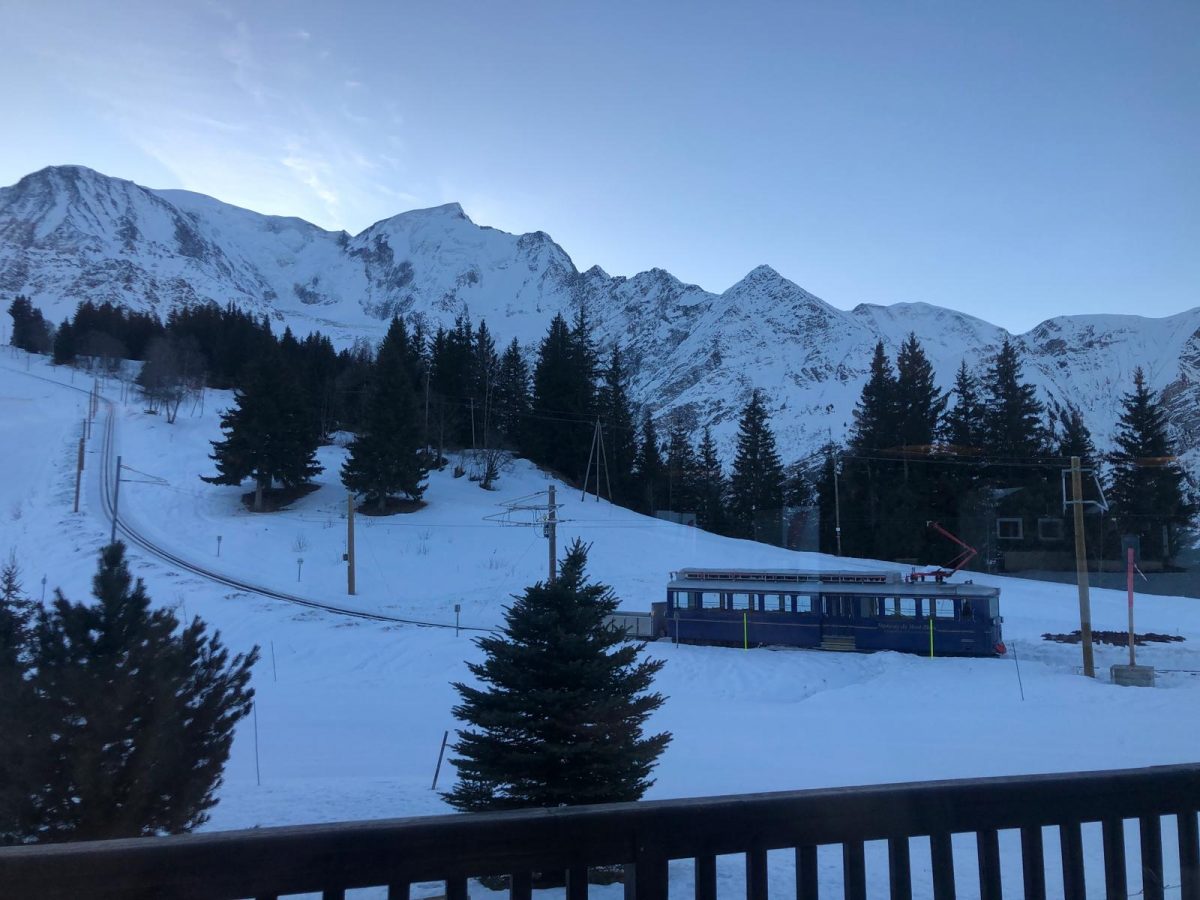 Début du week-end, on commence avec un excellent restaurant à Saint Gervais pour un repas convivial et faire connaissance. Nous sommes un petit groupe de 20 personnes comprenant des adolescents avec un esprit familial. Nous prenons le train du Mont Blanc pour arriver à notre hébergement au « Le Col de Voza ». Arrivée originale, on traverse les pistes de skis avec nos valises, lieux en immersion total sans voiture !