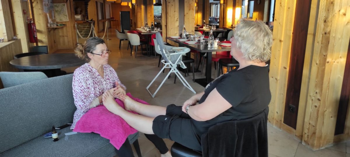Paloma (orthopédiste) et de Véronique (réflexologue) ont animé des ateliers sur les 3 jours du séjour, avec des bilans orthopédiques et des séances de réflexologie offerts aux participants.