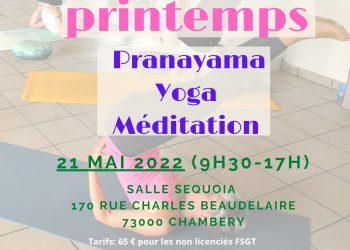 Nous sommes heureuses de vous annoncer notre prochaine journée consacrée au YOGA . Elle aura lieu le samedi 21 mai dans la salle Séquoia quartier de Bellevue à Chambéry. Cette journée entière de pratique nous permettra d’aller plus loin dans l’exploration de notre corps et de nos ressentis. Le printemps nous apporte une nouvelle énergie, naissante et florissante. Au programme, du Pranayama, des Asanas et de la Méditation. Nous enseignons en duo durant cette journée. Nous mélangerons donc nos pratiques et nos énergies.